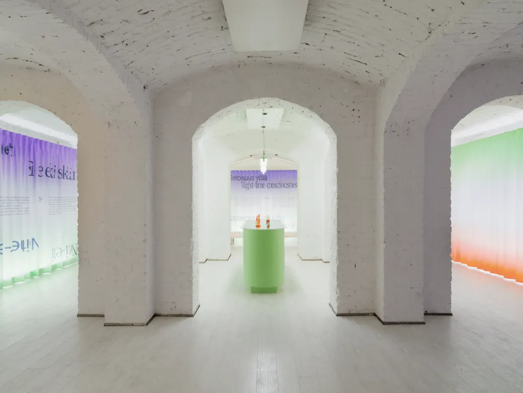 Marina Veziko is the Graphic Designer of the Year 2021. In her exhibition, under the name We think differently at night (Ajattelemme toisin öisin), Veziko, who is one of Finland’s leading designers, explores the role of intuition and the unconscious in creative work.